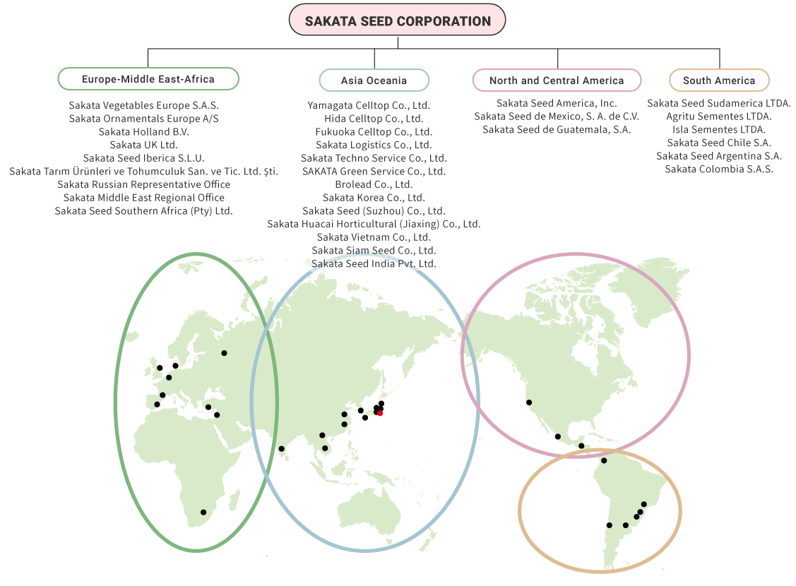 Regional directing companies are placed to supervise each of the three regions; North & Central America, South America, and Europe/Middle East/Africa. Sakata Seed Corporation and the regional directing companies discuss management issues and aim to optimize the entire group.