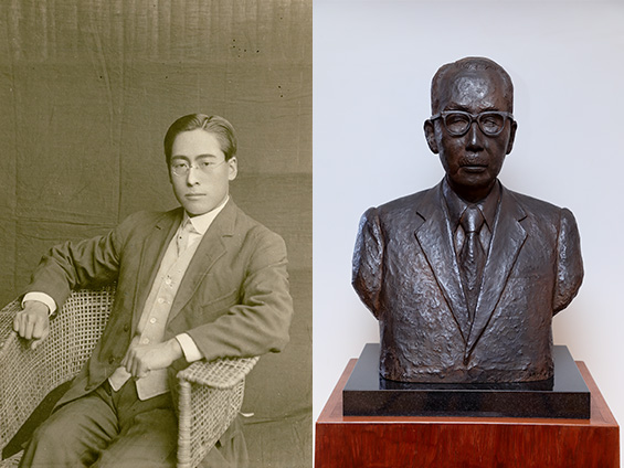 (Left) Takeo Sakata in his youth (Right) Statue of Takeo Sakata