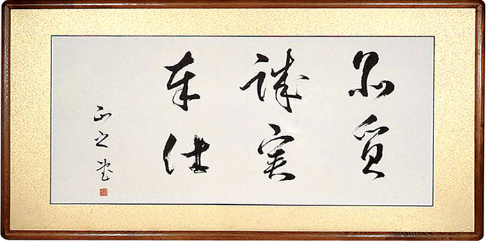 Calligraphy of our company motto, “Quality, Reliability, Service,” by the fourth president, Masayuki Sakata