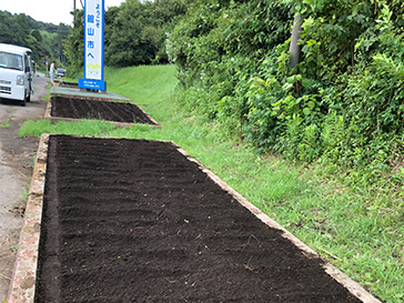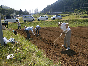 ヒマワリ畑づくりに際しては、コロナ禍で活動場所を失ったボランティアにも参加していただきました。作業の合間には「普段、家では何を育てているの?」「私はこんな風にやっているよ、この間は芋を植えたよ」など、笑い声や、懐かしい歌を口ずさみながら笑顔あふれる活動となりました。