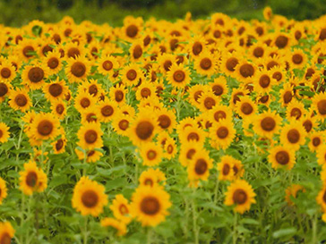 秀峰鳥海山への入り口、日向地区のヒマワリ畑が、皆さんのご協力をいただき今年も見頃を迎えました。毎年実施しているヒマワリの作付けは、東日本大震災と原発事故以降、被災地の福島を元気づけようとヒマワリのタネをまいたのをきっかけに始まりました。