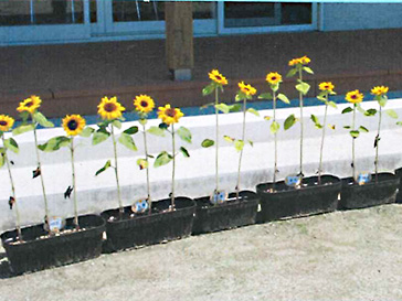 気仙沼市立波路上保育所園児が育てたヒマワリ