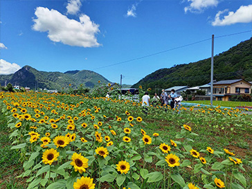 6月上旬、ボランティア含む協力者とタネをまき、7月下旬~8月上旬にヒマワリが見頃となりました。地元の新聞でも紹介され、市外の方にも足を運んでいただきました。