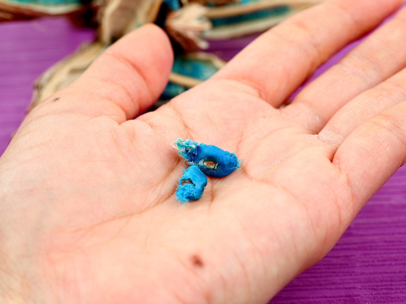 タネってちょっと地味だよね、と思っているそこのあなた。まずは、このタネをご覧ください。目の覚めるようなコバルトブルー、まるで着色したかのような鮮やかさに、「タネの世界の宝石や!」とついつい感嘆符を放ちたくなります。タビビトノキはバナナのような実を付け、熟すと割れてタネが現れます。この美しさにはどんな意味があるのでしょうか。鳥や昆虫が見つけやすい? 身を守るため? ヒトが持ち帰ってくれる? 想像する楽しみがあるタネです。